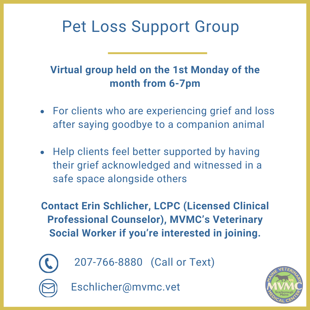 - Cummings School of Veterinary Medicine at Tufts. Pet Loss Hotline: 508-839-7966